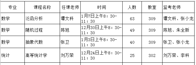 2019-2020秋季学期研究生学科必修课期末考试安排