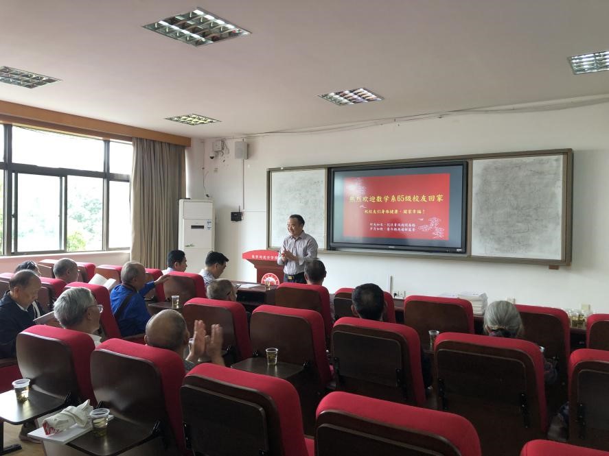 时光如水,忆往昔风雨同舟路;岁月如歌,看今朝再谱新篇章。10月9日,js3333线路检测中心数学系65级部分校友重返母校举行毕业50周年聚会, 原正校级督导、副校长周景明全程陪同。