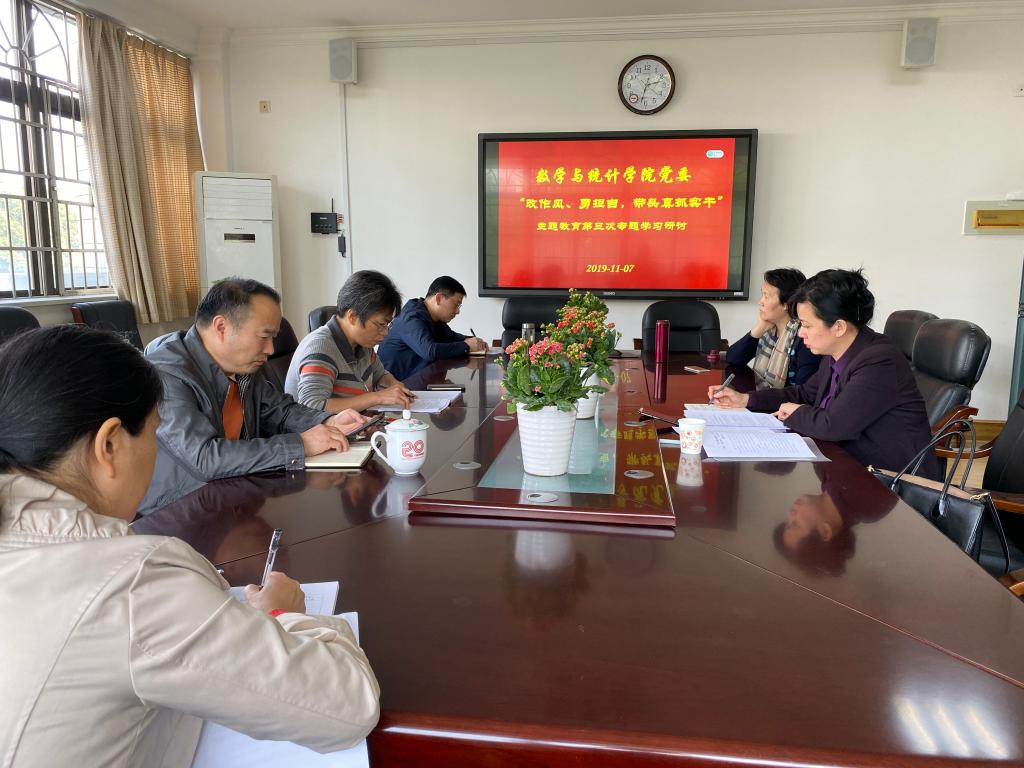 11月7日下午,js33333金沙线路检测党委理论中心组在理学楼301会议室召开“不忘初心、牢记使命”主题教育第三次集中学习研讨会,大家围绕“改作风、勇担当、带头真抓实干”主题研讨交流。会议由院党委书记颜中玉主持,监察处副处长、督导组成员周伊慧到会指导。