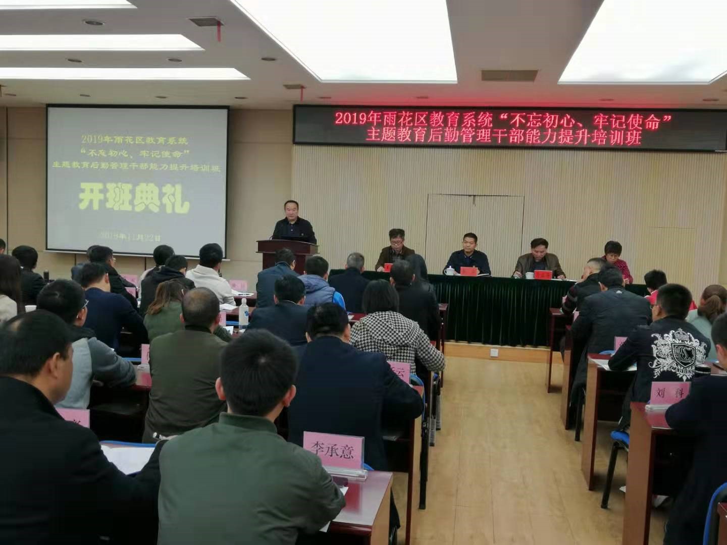 11月22日上午,由js33333金沙线路检测承办的2019年度雨花区教育系统“不忘初心、牢记使命”主题教育后勤管理干部能力提升培训班在湖南邮电职业技术学院西苑楼603教室举行开班典礼。湖南师范大学继续教育学院院长马卫平、js33333金沙线路检测党委书记颜中玉、雨花区教育局党委委员、提名副局长黄华、雨花区教育保障服务中心主任王志鳌出席开班典礼,典礼由js33333金沙线路检测副院长高旗举主持。