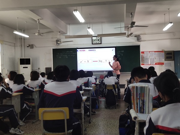 汇报课上,刘霞通过对数的历史引入教学内容,采取探究式教学,引导学生逐步了解对数的概念及相关性质。她借助信息技术向同学们展示对数与指数的关系,并讲解例题,让学生在练习中熟悉对数运算。最后,刘霞播放“我为自己代言(对数版)”演讲音频,鼓励学生们勇往直前。