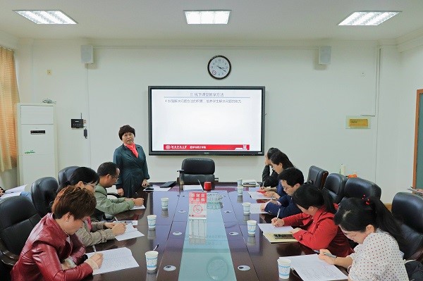 崔登兰分享教学感悟。她表示,在教学过程中,教师应充分调动同学们的兴趣与积极性,在实践教学中因材施教,发掘学生的潜能。与此同时,她通过展示教学案例的方法,介绍教学中常采取的策略与方法,并建议老师们在今后的课堂中可以采用讲练结合的方法,活跃课堂气氛。