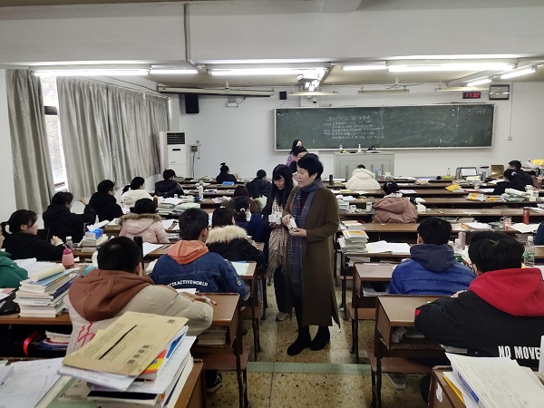 (通讯员 刘依典 章寒露)12月3日上午,js33333金沙线路检测(以下简称“数统院”)院长谢资清,党委副书记熊卓然以及学工办主任李俐,辅导员杜涛、郭健前往格物楼609考研自习室慰问2021届考研学生。