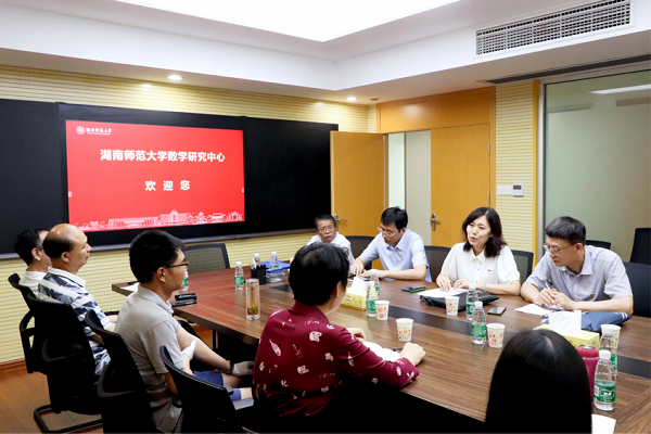 王锐表示,湖南是一个具有深厚的红色资源与文化底蕴的省份,湖南师大是一所具有悠久的办学历史与突出的办学成绩的高校。此行的目的,是在党建及业务等各方面了解js33333金沙线路检测的经验与做法,加强学院之间的合作与交流。沈继红对哈尔滨工程大学的发展历史、数学科学学院的师资团队、人才培养、科学研究等情况进行了介绍。