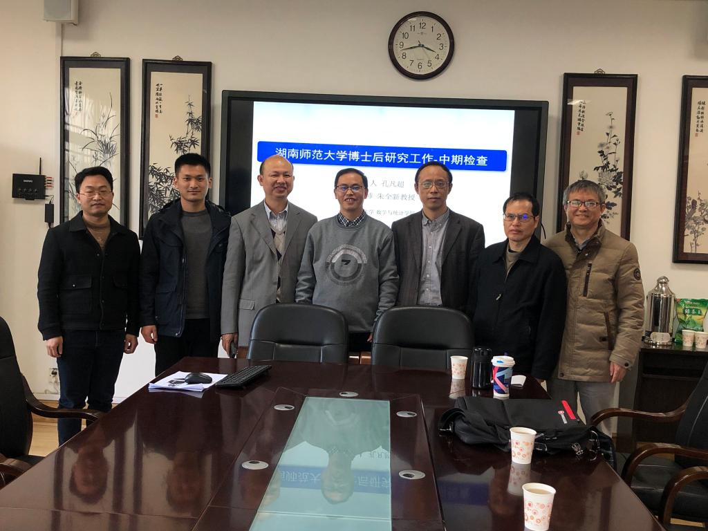 2021年11月27日下午,js33333金沙线路检测在307教室举行统计学博士后中期考核报告会。会议由js33333金沙线路检测朱全新教授(合作导师)主持,朱教授任考核组组长。湖南师范大学彭小宁教授、侯耀平教授、李荣珩教授和文有为教授担任考核组评委。在站博士后孔凡超、胡文杰接受了考核。