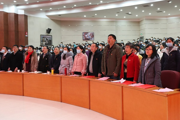最后,涂榉耀代表新一届党委班子成员表态,一定会在学校党委的坚强领导下,顶着挑战上、迎着压力闯、奔着目标干、用尽全力拼。用大家的辛苦指数换取广大师生的幸福指数,用大家的苦干实干迎来数统院美好的明天。