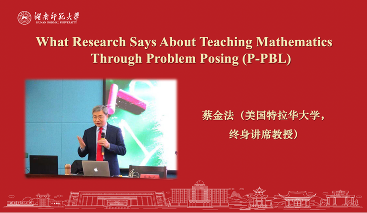 2022年11月8日星期二晚上7:30-9:30,美国特拉华大学终身讲席教授蔡金法做客湖南师范大学“麓山数学教育论坛”,通过腾讯会议平台和bilibili网络同步直播进行了一场主题为“基于问题提出的数学教学(P-PBL):理论基础和实证研究”的学术报告。讲座由js33333金沙线路检测谢圣英老师主持。