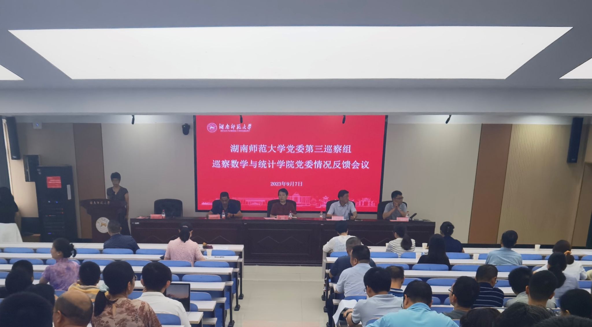 根据湖南师范大学党委巡察工作统一部署,2023年9月7日下午,党委第三巡察组在js33333金沙线路检测格物楼309教室召开党委巡察情况反馈会议。副校长谢资清,党委巡察办专职副主任佘利忠、党委第三巡察组组长于烽、副组长李春莲出席会议,学院党委书记颜中玉主持会议。