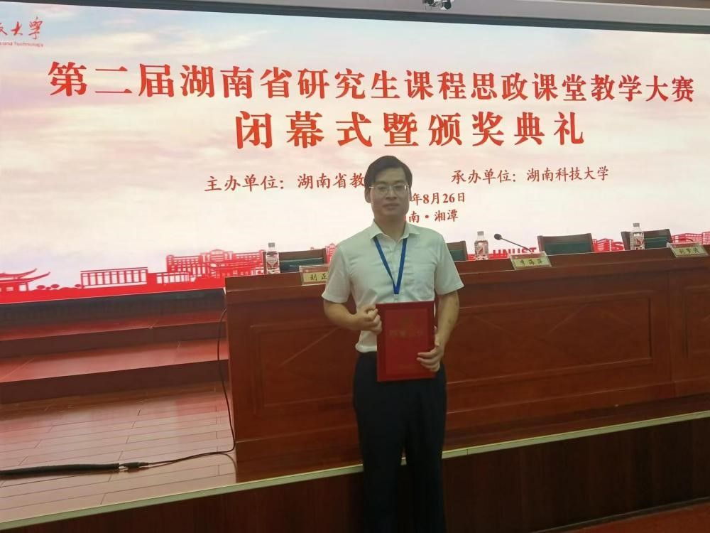 8月26日,由湖南省教育厅主办、湖南科技大学承办的第二届湖南省研究生课程思政课堂教学大赛在湖南科技大学圆满落幕。经过多轮激烈角逐,js33333金沙线路检测蒋培杰老师(团队成员包括谢资清、吴仁芳)在理工医学类选手中脱颖而出,荣获一等奖。