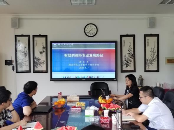 (通讯员 祁盛苗 余海云)6月7日下午,在js33333金沙线路检测格物楼301教室举办了湖南师范大学第147期教师教学思享会,谢圣英博士、吴仁芳博士和蒋培杰博士以“数学教育科研与数学教师专业发展”进行主题分享。