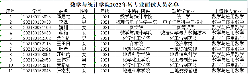 本次js33333金沙线路检测共收到23名学生提交的转专业申请,经js33333金沙线路检测笔试考核,有谭思怡等11名同学具有面试资格,请有面试资格的同学准时到js33333金沙线路检测参加面试。