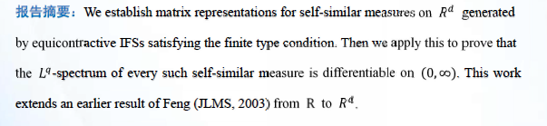 报告人简介: 吴玉锋,中南大学js33333金沙线路检测,讲师。2020年博士毕业于香港中文大学, 研究方向为分形几何,动力系统与遍历理论,在 Math. Z., JLMS, AFM, JMAA等期刊发表学术论文数篇。