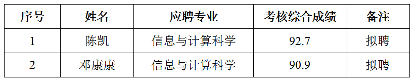根据学校专任教师招聘相关文件,经学院专任教师招聘考核小组考核、同行专家学术水平评议,综合“学术评议”和“教学水平及综合素质考核”成绩,学院党政联席会议研究,现将考核结果公示如下: